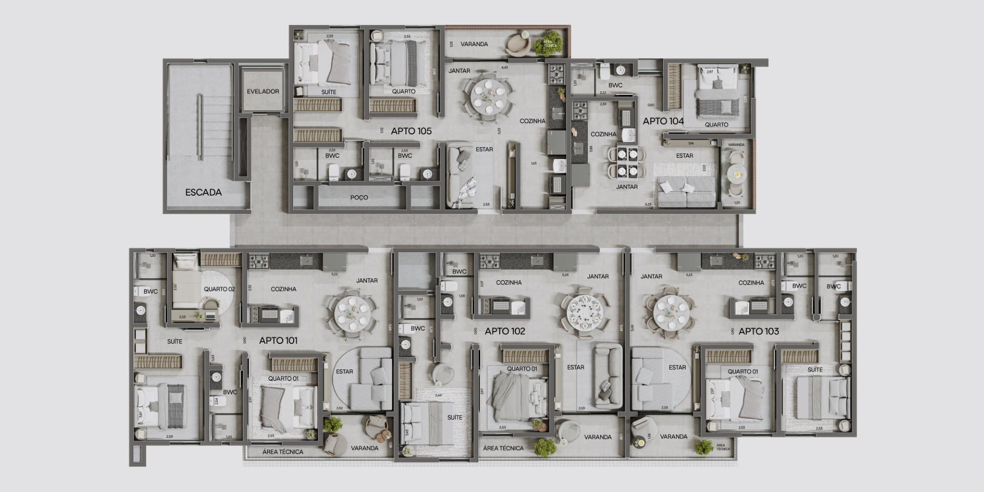 Ponta de Campina37m² a 71m² + térreo com área externa de 43m² a 46m²